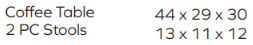 - Coffee Table has a Sliding Compartment with 2 Stools