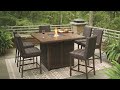 Turn your backyard space into your own piece of paradise with the Paradise Trail outdoor table with fire pit. Though this outdoor table looks remarkably like wood, it’s made of sturdy, rust-proof aluminum that’s perfectly suited for alfresco living. Enhancing the rustically refined aesthetic: side panels accented with all-weather, handwoven resin wicker. The result may look high maintenance, but rest assured, this outdoor fire pit table is anything but. With the press of a button, ignite a flickering flame that dances over a bed of glass beads. And with room for up to eight, it’s one highly accommodating outdoor bar table.